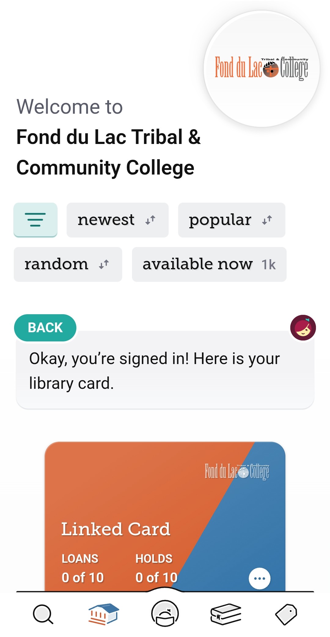 Tap “Yes” when asked if you have a library card.